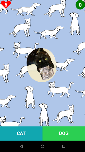 - Swipe falling cat or dog photos to match categories.