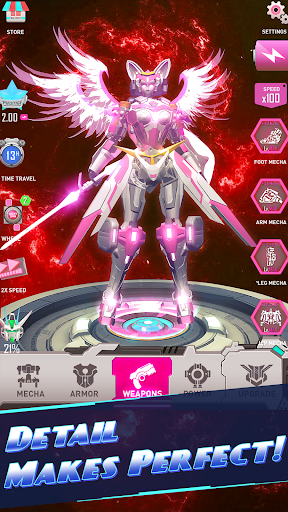 In Idle Robot, you could choose MK-2, Free Zeros and other different kinds of robots and start to build your own robot. We give you a unique chance to discover and merge various parts including armor, weapons, powers of a robot right from sketch.