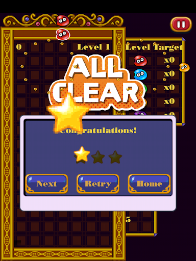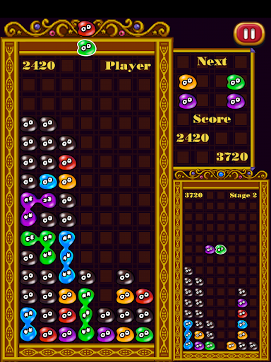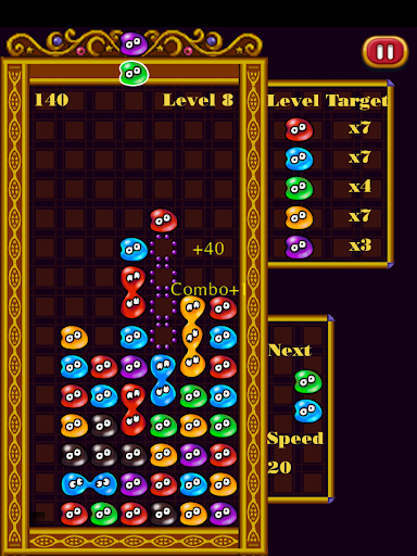 This is a classic drop and match puyo game. Colorful mean beans were drop down and merged with ones with same color. When the number of merged beans reach 4, a magical explosion will appear. Super explosion will appear when the much number exceeds 4. You can even try chained combo which means one explosion caused by another.
