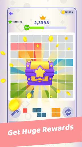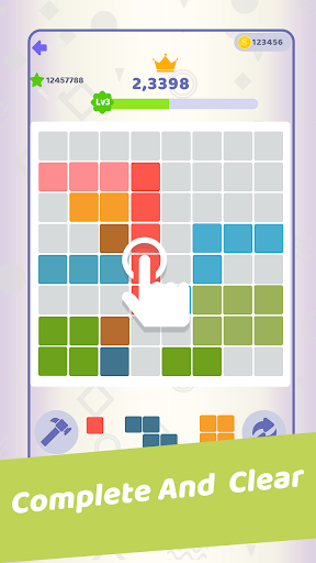 Place various types of blocks in a limited space. When you fill a row or column, all blocks in that row or column will be deleted.