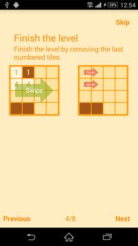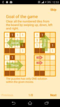 Swipe to move, merge and remove tiles from the board. Advance to the next puzzle by removing the green primary number tile.