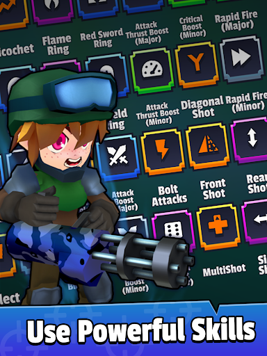 Reach the top of every Tower by shooting every Enemy that stands in your way. Each Tower has unique environments and enemies which will take you from fantasy grasslands, to arctic research stations, to sandy military deserts, and beyond. Complete your quest of defeating every Boss to prove your worth in this world of Adventure and become the Blaster Hero!