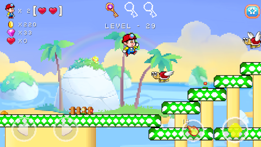 Super Bro's hometown was invaded and destroyed by some unexpected monsters. They robbed Super Bro's family treasure and took away his fiancé. However, Super Bro didn't give up, instead he goes deep into the mystical jungle, the freezing tundra and the dangerous castle to get them back! And YOU are the ONLY one who can help Super Bro along his way. Guide him through all the troubles, collect great rewards! This epic journey awaits!