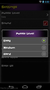 - puzzle with beautiful interface and three levels of difficulty ( Easy>Medium>Hard ).