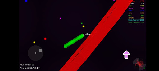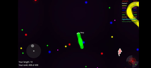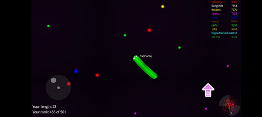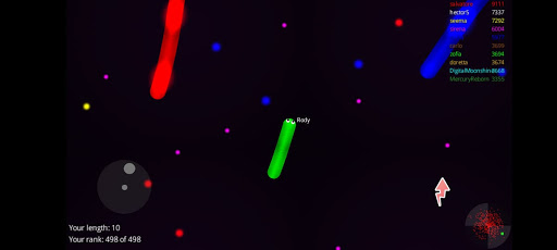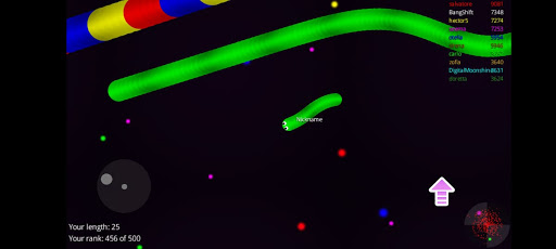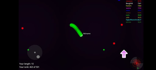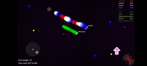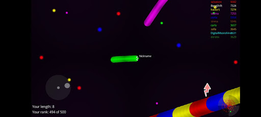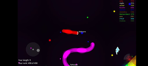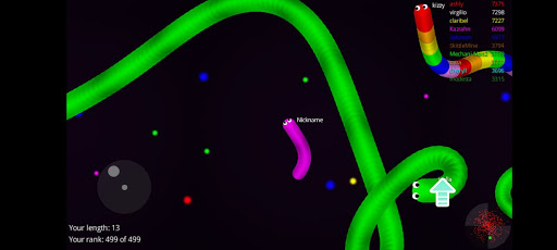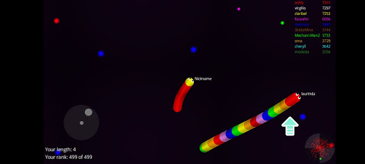 Slide ahead of other snakes to kill them and eventually eat their light dots.