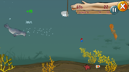 In the Litter Fisher game, you have to tap the screen to move the net to collect the litter before the cod eats it. You can advance to different levels while playing. The aim is to unlock additional animals, such as a seal or porpoise.
