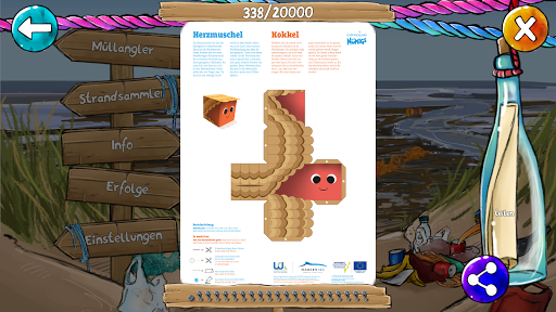 The more you play, the more litter disappears. Additionally, you will unlock success bonuses which you can access at any time. These success bonuses hide impressive pictures or “De Nümigs craft sheets” as well as other exciting information that you can share with your family and friends.