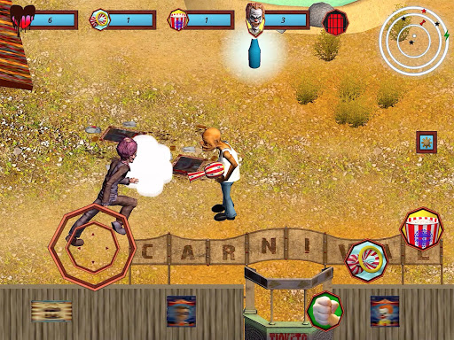 The radar in the upper right will give users a view of the attacking dogs, clowns, the unbeatable ventriloquist dummy and ammo in your area. When users cleared their current level of enemy clowns on the radar, they will see a green arrow pointing to the now open gate.