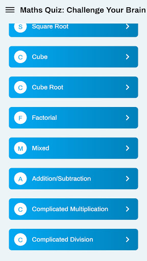 ★ Addition, Subtraction, Multiplication, Square root….total 13 types of quiz category with has 30 level.
