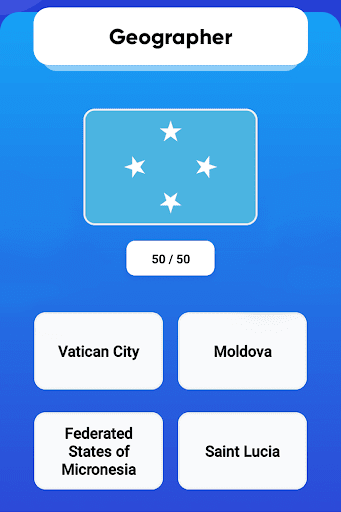 We made several levels in the Flags of the world Quiz game, such as: student, tourist, geographer. Every level that increase in difficulty, and overall. As you move from one level to another in country games, you earn coins that you can spend on hints when you struggle for an answer. Before each level of Flags of the world Quiz, we've added a Common Knowledge section where you can resume your knowledge of flags of the world and capitals.
