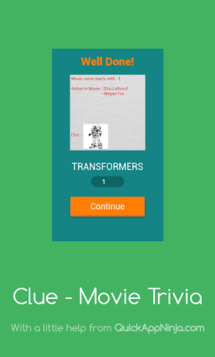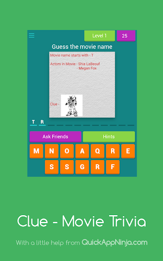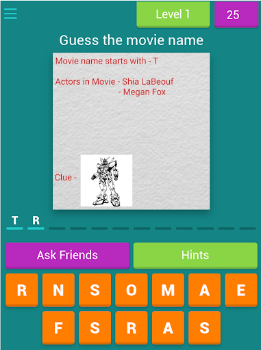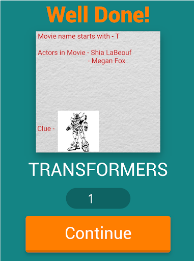 See if you can guess all the movies from the clues provided in each picture. The first letter of each movie is given plus 2 of the cast characters playing in that movie with one final clue to help you solve the quiz. Hints is available Plus reward video's to earn extra coins to help you keep on playing and complete all the levels.