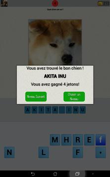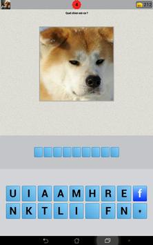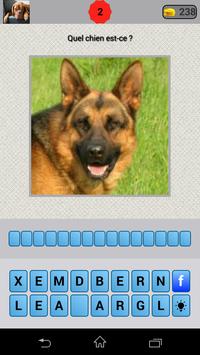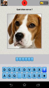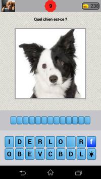 Quizz portant sur les différentes races de chiens et en langue française. Retrouvez le nom de la race du chien en français en fonction de la photo affichée à chaque niveau.