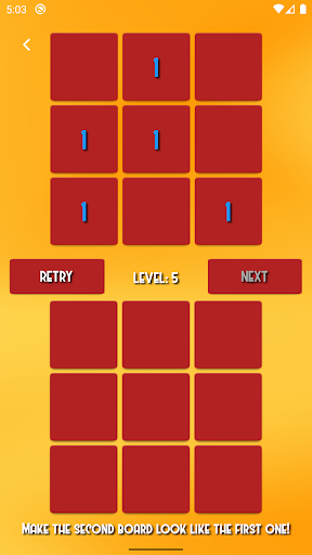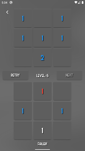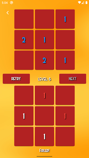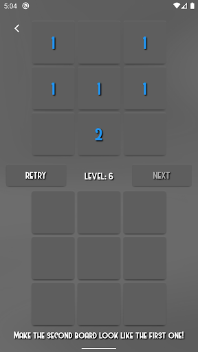 Plus One is very interesting and addictive game. The rules are simple and easy to learn. When you click one of the tiles you add 1 to the numbers of the nearby tiles (up, down, left, right). The number of the clicked tile doesn't change! When you hold down a tile you can see how the nearby tiles will change. Your goal is to make the second board exactly like the first one. When you complete the level you can proceed to the next one. The game difficulty increases according to the level. You must try to reach as high level as possible. If you login you can compare your result with other players. Try to be the best! The game can became very difficult so be careful! It is a good start to try the tutorial section of the game. Enjoy!