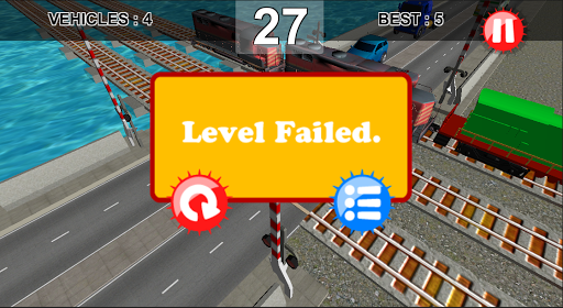 Train Road Crossy 2017 simulation game is all about rail road signals crossing and traffic control at fingertip. A Train line crossing on the screen where cars can cross the railway Trains are coming randomly in both directions, which you can check by the red arrows blinking on the railway line. You need to control the rail gate in a way so that none of the cars gets collided with the train. Once collided, game will over.