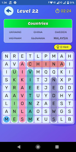 This game Word Search - Word Puzzle Gamehas the aim to find all the hidden words on the board. Select letters with your finger. To pass a level, find all the words listed on the board. Improve your vocabulary, spelling and puzzle skills. Exercise your brain as you play.
