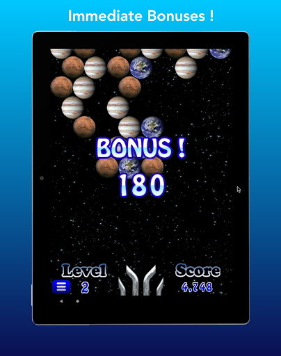 IMMEDIATE BONUSES - Pop five for more bubbles and receive an immediate bonus. The bonus is 15 points times the level number times the number of bubbles popped.