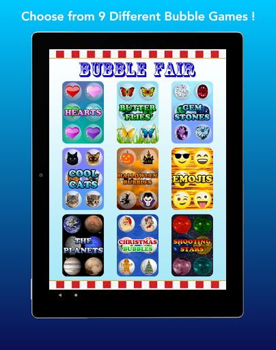 Bubble Fair is a Bubble Shooter Game, that has 9 bubble games to play.