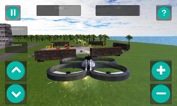 machineguns that are mounted on the ground. Try to eliminate all weapons from the ground, as many drones, and make a bigscore. Make sure you do not run out of energy or life. To recharge with energy you have to go to the building where you have been spawned. Stay on the platform and a dialog box will appear. The game does not have a function of saving progress, we are sorry for this and we hope to add in a later update.