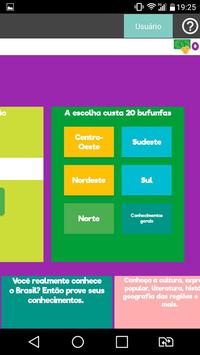 Ele é dividido em 6 categorias: Centro-Oeste, Nordeste, Norte, Sudeste e Sul, mais uma de conhecimentos gerais sobre todas estas regiões.