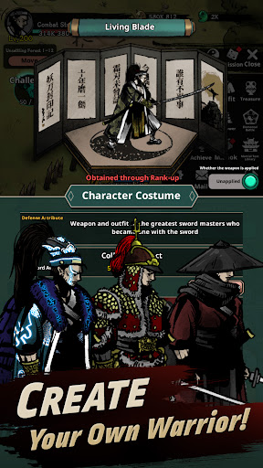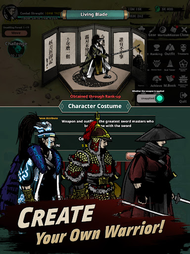- Train your own swordsman with various martial skills and equipment combinations