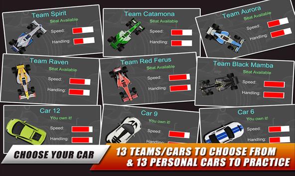 13 Cars / Teams to choose from all with their own speed and handling