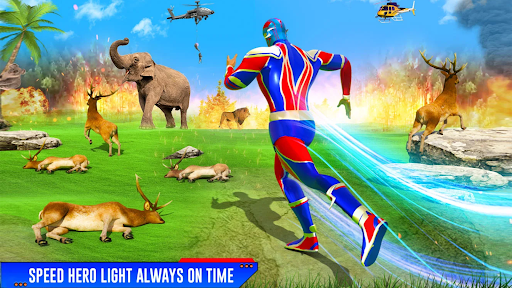 Gangsters are active, crime rate is high, people are in danger and criminal activities are at its peak in superhero game. Carry out rescue mission with your police robot superhero run at light speed, snatch car and automobile, use super punch, and show them your kung fu skills and destroy the immortal gangsters crime mafia. It is an epic speed hero game where you will experience robotic adventure of a speed robot hero and give protection to the civilian from monster animals attack on the city.