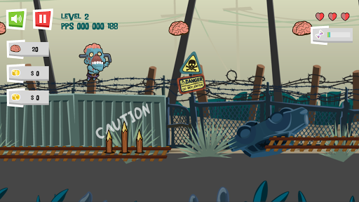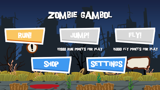 Run, jump and fly with these cute little zombies. Get the points you need to play other games, play strategy, collect enough money to appear more lives and get immortality and eat many brains to change your character, so you can increase the score achieved and unlock the other game levels and if there you can run, jump and fly your little zombie endlessly, but be careful of the traps scattered throughout the path, some are really lethal. Have fun with Zombie Gambol!