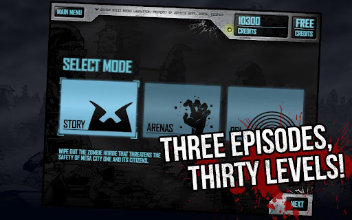 You must protect Mega-City One from a zombie invasion! Arm yourself with a Lawgiver pistol and three other devastating, upgradable weapons. Fight four deadly zombie archetypes in thirty levels of game play. Choose from seven special upgrades to give you an edge over your undead foe!