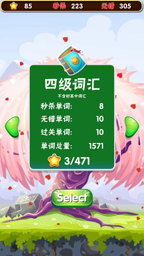 千万不要图快而乱点一通,这样对背单词和游戏闯关都有害无益。每一关会根据正确率来获得相应的星星数,如果正确率不够是不能过关的。