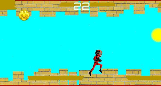 Cool High Power Red Rangers running jumping game. Tap the screen to start the game. Tap the screen to jump. Tap the screen to fall. Collect all gold coins.High score..