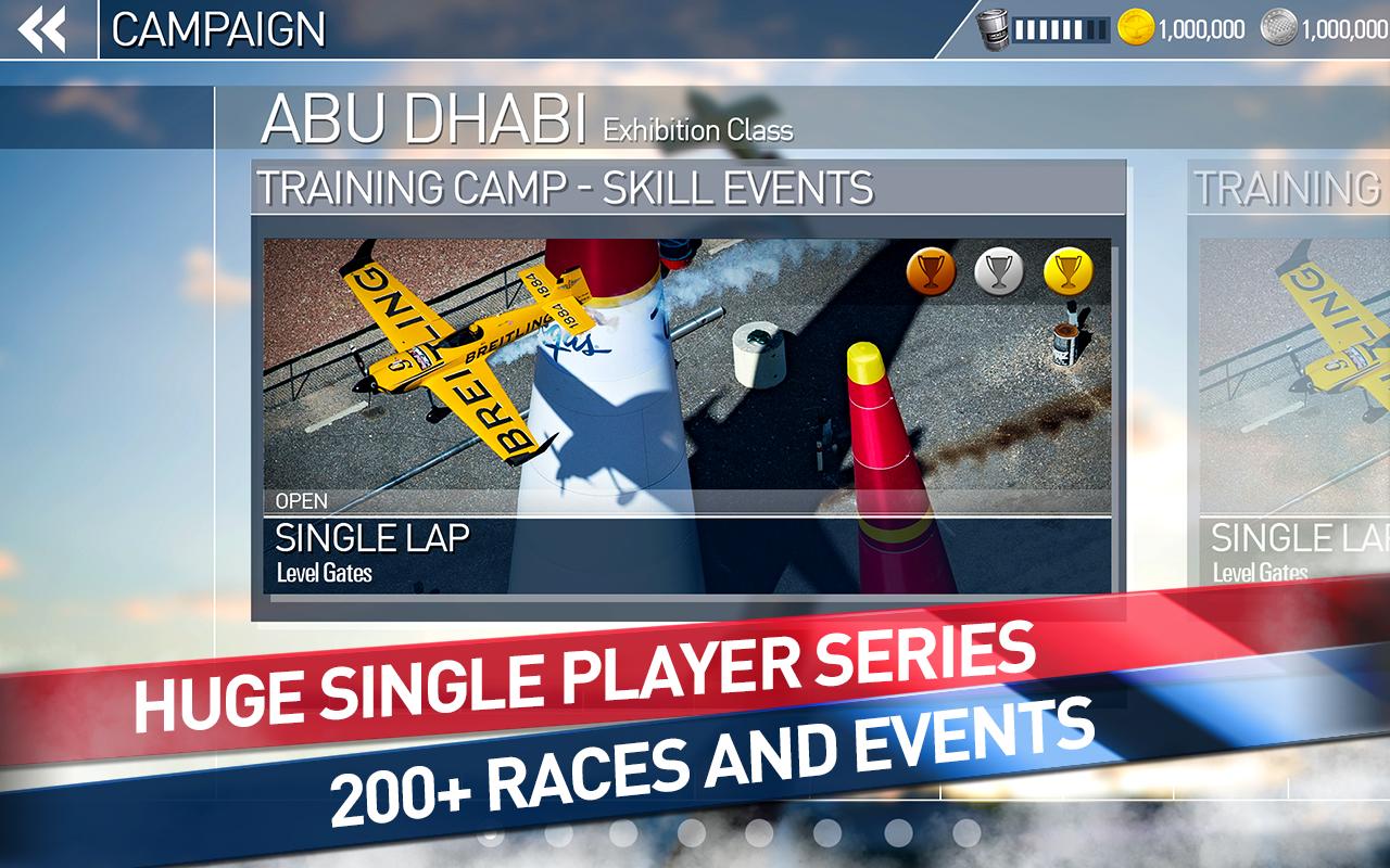 Touch or Tilt controls, you decide. Effortlessly supports multiple control configurations for tilt and touchscreen. Accelerate, bank and pull vertical turns to earn a spot on the Red Bull Air Race podium.