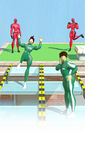 Train an iron heart to pass them all. Test your fast reflexes by running as fast as possible toward the finish line when the green is on and stop when the red switch on. Pass that and you will be tested your skill by gently separating a dalgona candy with the right force - don't break it and you will be fine. However, the fun is not over, let test your aiming skill at the classic marble game. Then after that you will compete in the game tug of war, and finally wrap it up with a thrilling jumping on glass game.