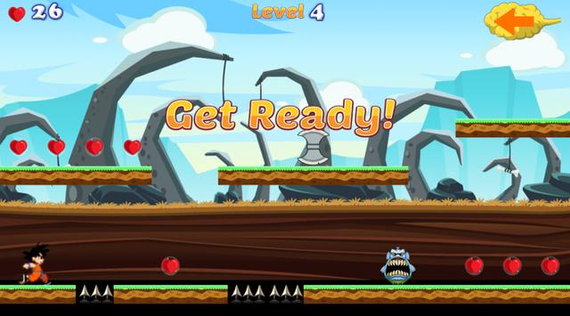 help The Goku through 100 beautiful levels with increasing difficulty !!