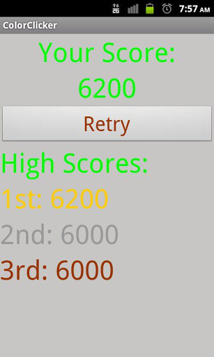 You get 5 seconds to score as many points as you can. Click the colors fast enough to beat your high score, in this fast paced, fun, and addicting game. This game is so hard to put down. How Fast Can You Click?