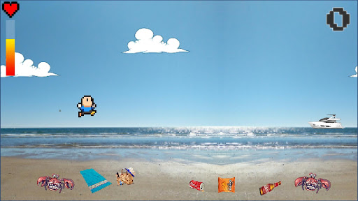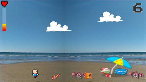 Camina por la playa y limpia la playa de bolsas de patatas, latas de refrescos y demás ... mientras vas esquivando unos cangrejos gigantes ¡cuidado con ellos!. Toma conciencia de que no hay que contaminar nuestro entorno, es nuestro deber mantenerlos limpios por el bien de todos.