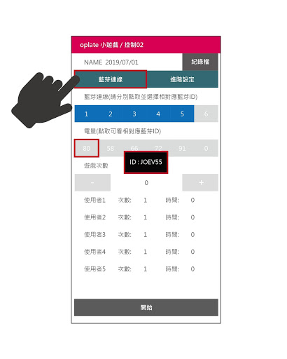 訓練手部動作的小遊戲。 需要把手抬高到某個高度並停留一段時間,可訓練到整個手臂。 有入門的單手模式和進階版的雙手模式。 最多可以6個人一起玩。
