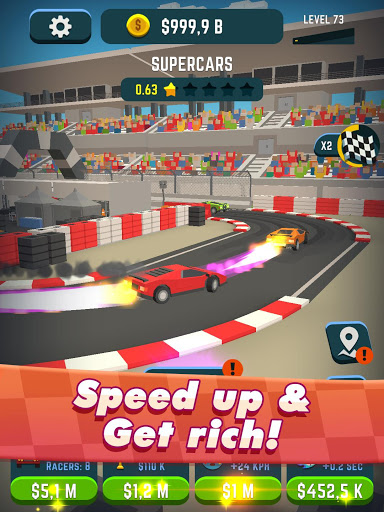 create an unrivaled idle car empire by riding on different idle race tracks!