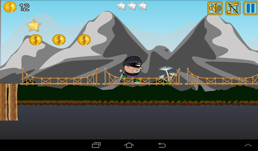 Help the thief jump and run away with as many coins possible by avoiding many challenging obstacles. While running and jumping you can give him magical powers, and make him jump multiple times or fly over obstacles. Do not let him lose the race. if you lose your way upon the road, thief will die.