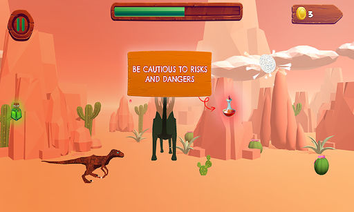 Dino Running Adventure is a simple and purely fun game to play. Help Dino to escape it and avoid spiky cactus and scratchy rocks! You are a dinosaur in a desert world, jump and crouch to avoid cactus, meteorites and other enemy dinosaurs.