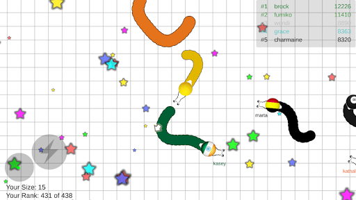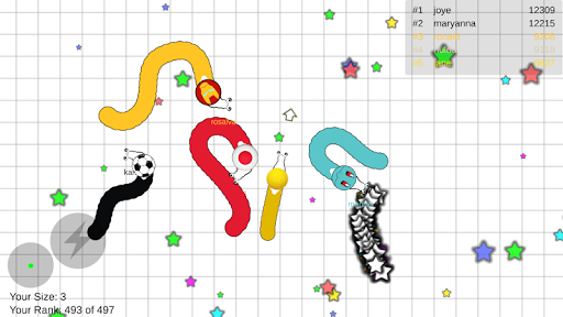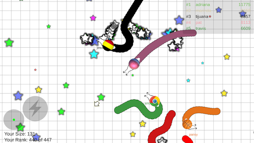 Roll Battle is funny game in strategy category with very simple game play. When you join Roll Battle game, you need roll other player to kill them and eat stars on the way to make longer. Let's try to as long as possible!