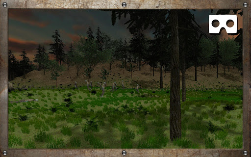 Horror themed train ride through haunted forest and forsaken graveyard filled with evil zombies for Google Cardboard or similar VR headset. No touch controls needed for this VR game.