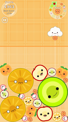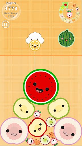 To prevent the fruits from crossing the line, let them collide with fruits of the same kind. When fruits collide, they evolve, and your score increases.
