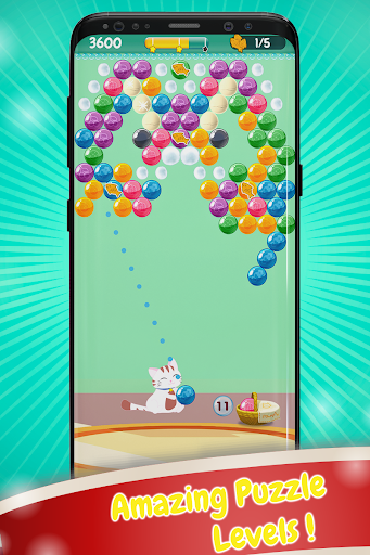 4. Clear all the bubbles on the screen and complete the mission of each level before you run out of bubble to help your cat collect and eat these kibbles and level up and get 3 stars.