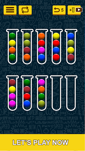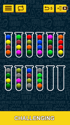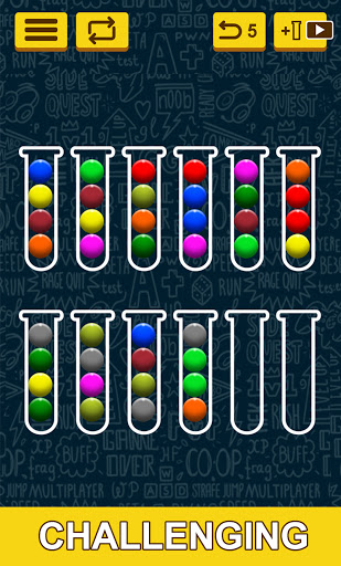 Ball Sort Puzzle, a color sorting game, is a fun and relaxing game that entertains and stimulates your brain! Quickly sort the colored balls in the tubes until all the same colors are together in the same tube. A challenging yet relaxing game to exercise your brain!