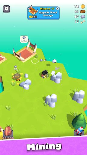 The game begins in the Stone Age. Your initial task is to gather wood and stone by cutting trees and breaking rocks. With these resources, you can expand your civilization by unlocking new areas. Additionally, you'll start building a dock using the bones you collect, which will be crucial for advancing to the next era.