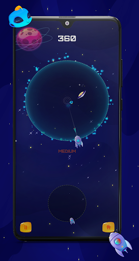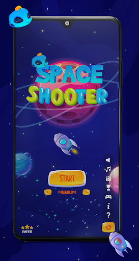 Space Shooter provides joystick control so you can precisely change position in Gameplay circle to shoot incoming spaceships and Aliens in the direction where you point your rocket.