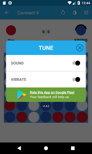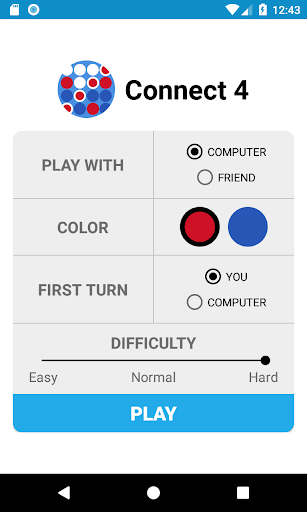 Modern and minimalistic game of Four In A Row. Play peacefully with a Friend or with the Machine using the level of difficulty you desire. Turn on or off the Sound and Vibrate function, depends on your taste. The most important, you can customize the background color to play even more comfortable.