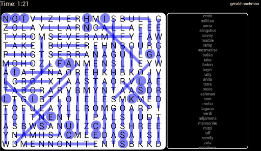 A word search, word find, word seek, word sleuth or mystery word puzzle is a word game that is letters of a word in a grid, that usually has a rectangular or square shape. The objective of this puzzle is to find and mark all the words hidden inside the box. The words may be horizontally, vertically or diagonally. Some teachers use them as educational tools for children, the benefit being that young minds can learn new words and their spellings by intensively searching for them, letter by letter, in the puzzle.
