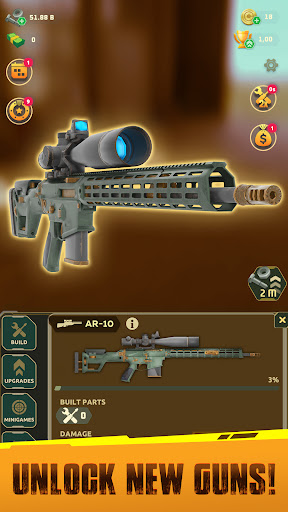 Build and upgrade your own custom guns piece by piece with engaging idle clicker gameplay! Amass your very own realistic firearm collection in an experience perfect for anyone who loves guns, survival games, and a good challenge. In Idle Guns, you get to become the ultimate gun builder and shooter in a world overrun by zombies!