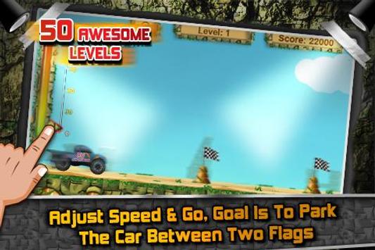 ✔ Drag the screen to get a view on entire level, before starting the game! Then adjust the speed of car to reach the destination flags.